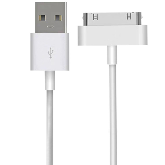 Кабел за зареждане и данни с USB-A към 30-пинов конектор. Дължина 100см. Бяло.